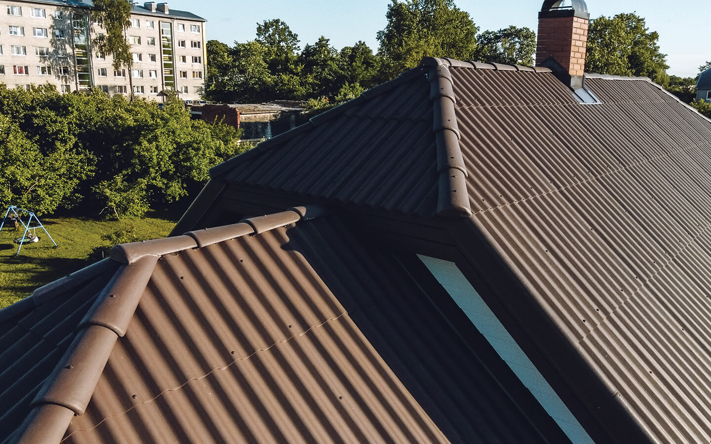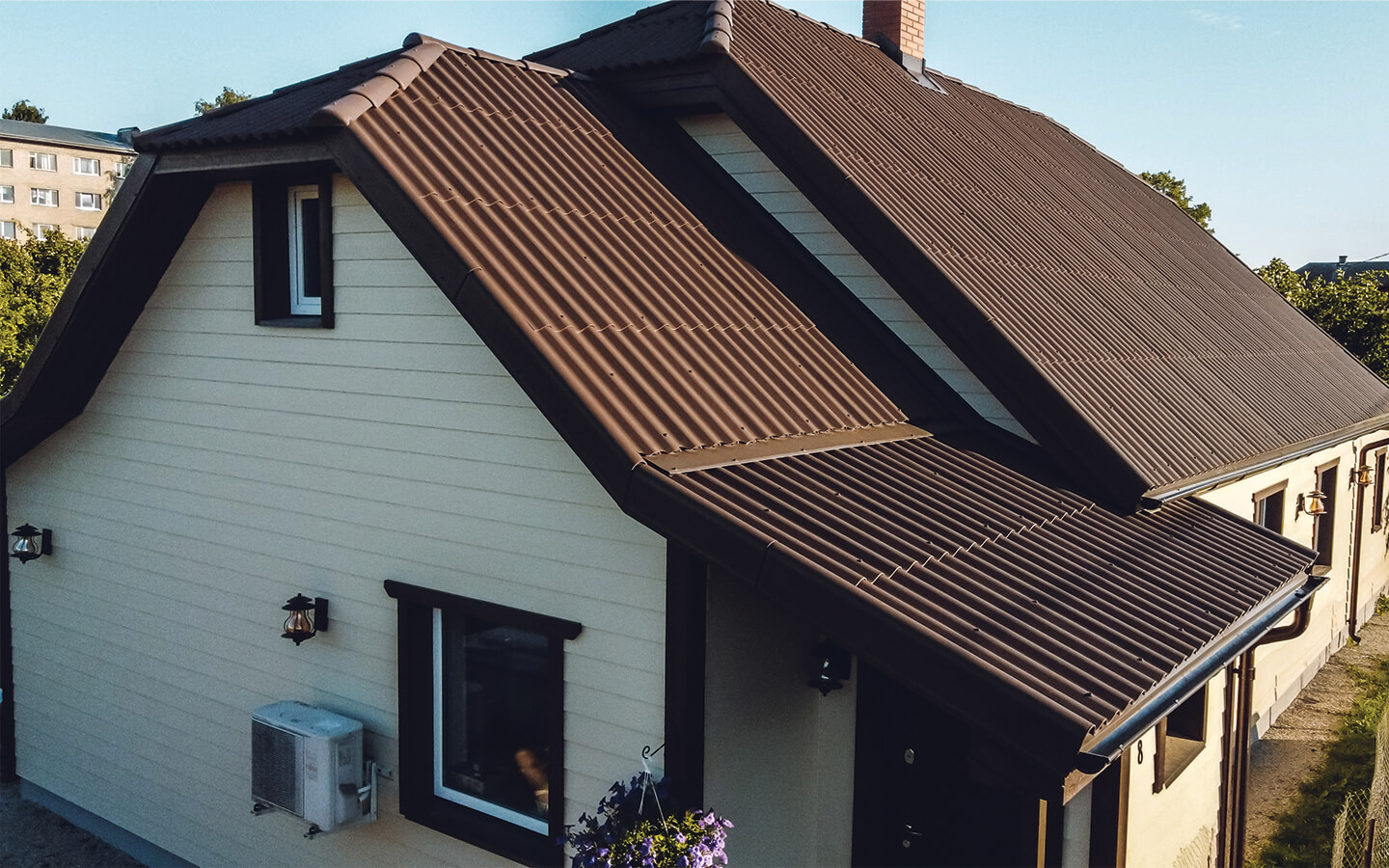 Eramu ehituseks valiti kaasaegne eterniit Leedu Eternit Klasika laineplaat, millel pruun värvitoon.