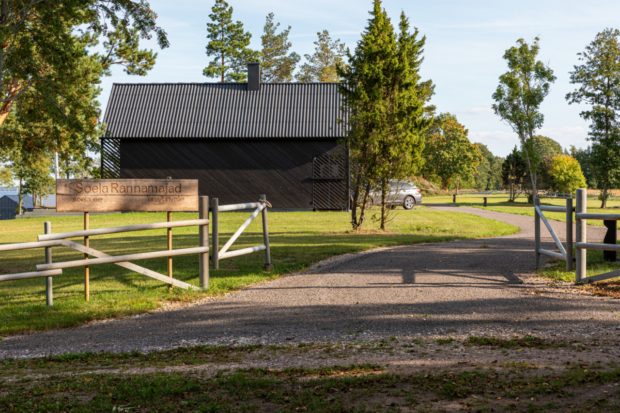 Võssa kasvanud karjamaast sündis mereäärne arhitektuurne vahepeatus, kus lihtsus ja salapära käivad käsikäes. Arhitekt Vahur Sova otsis vormi, mis oleks arhetüüpne ja tagasihoidlik – nagu paadikuur või tarbehoone, kuid mille kesta sisse on peidetud midagi pigem nooblit. Mere poolt avanevad Soela puhkemajad rohkem, lastes valgusel ja vaadetel ruumi sisse voolata. Kompaktne, ent läbimõeldud ruumiprogramm mahutab väikese seltskonna midagi olulist ohverdamata. Valguse ja tumedate pindadega mängivate puhkemajade katused on kaetud loodussõbralike aga vastupidavate kiudtsement Eternit Klasika laineplaatidega.